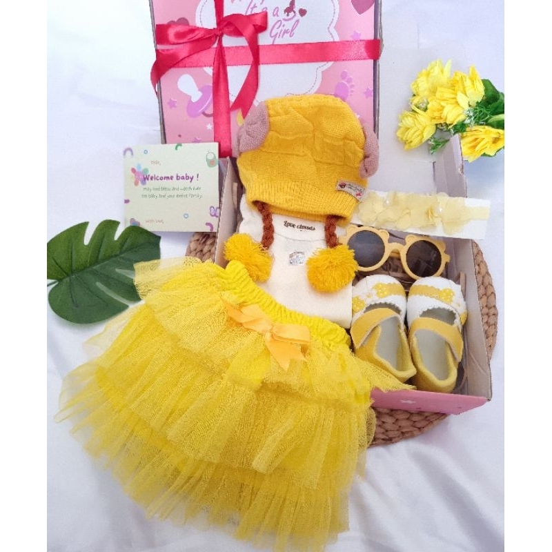 Hampers bayi paket lengkap PREMIUM TUTU KUPLUK KEPANG box motif baby girl/ Kado bayi perempuan jumper hemat