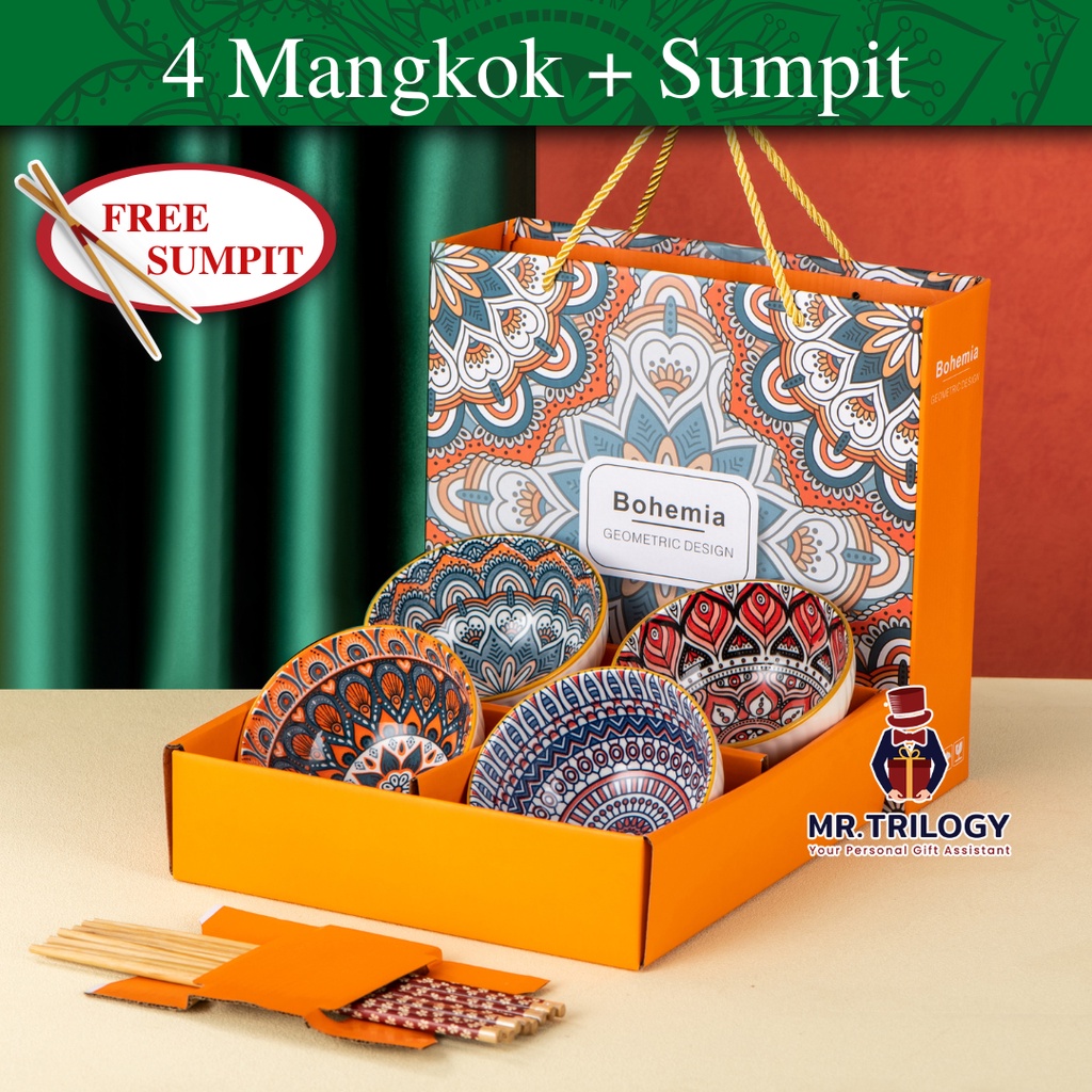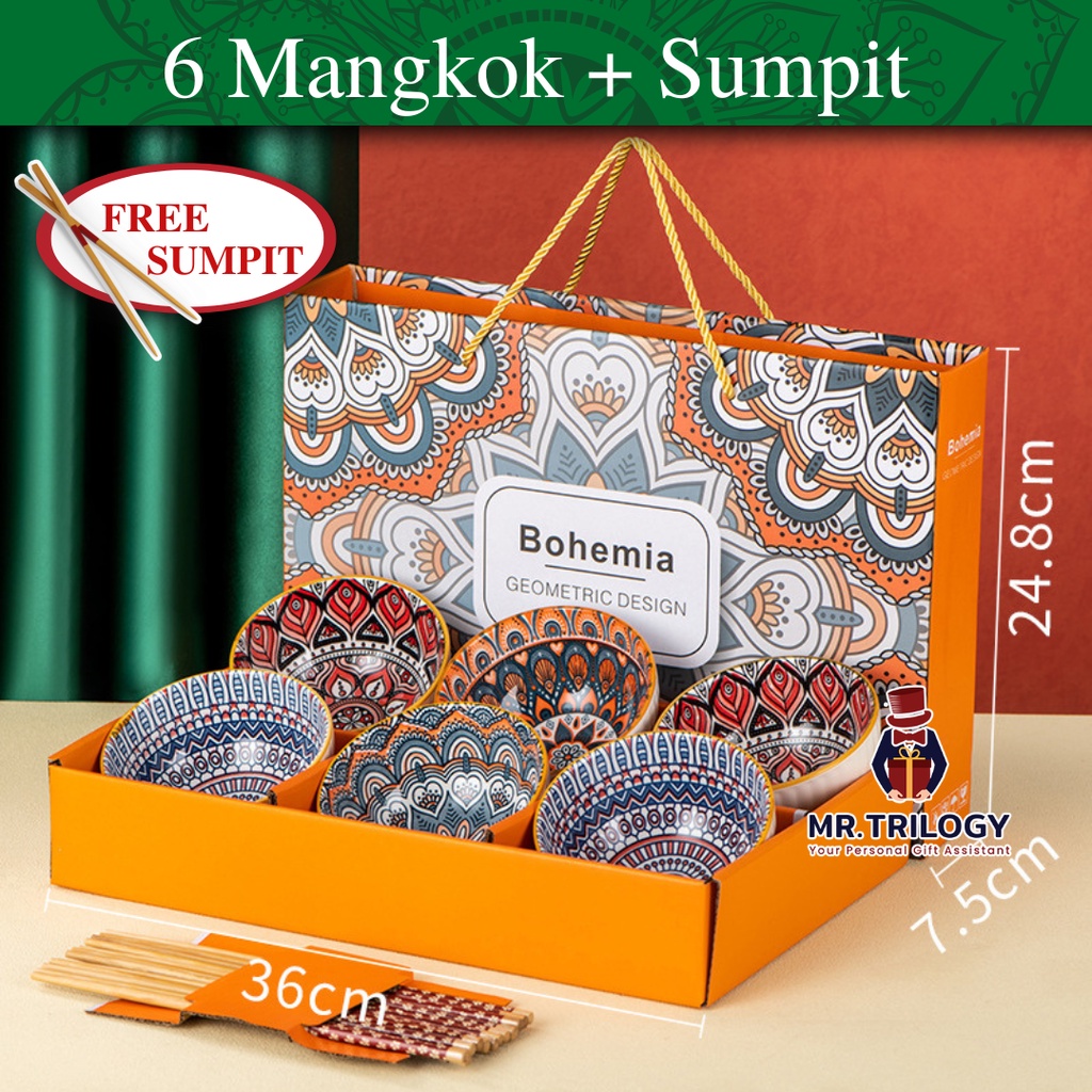 Perlengkapan Rumah > Peralatan Makan > Mangkuk > Hampers Bohemian Mangkok Keramik Set Classic Alat Makan Elegan Kekinian Sovenir Lebaran Hari Raya Hadiah Ultah