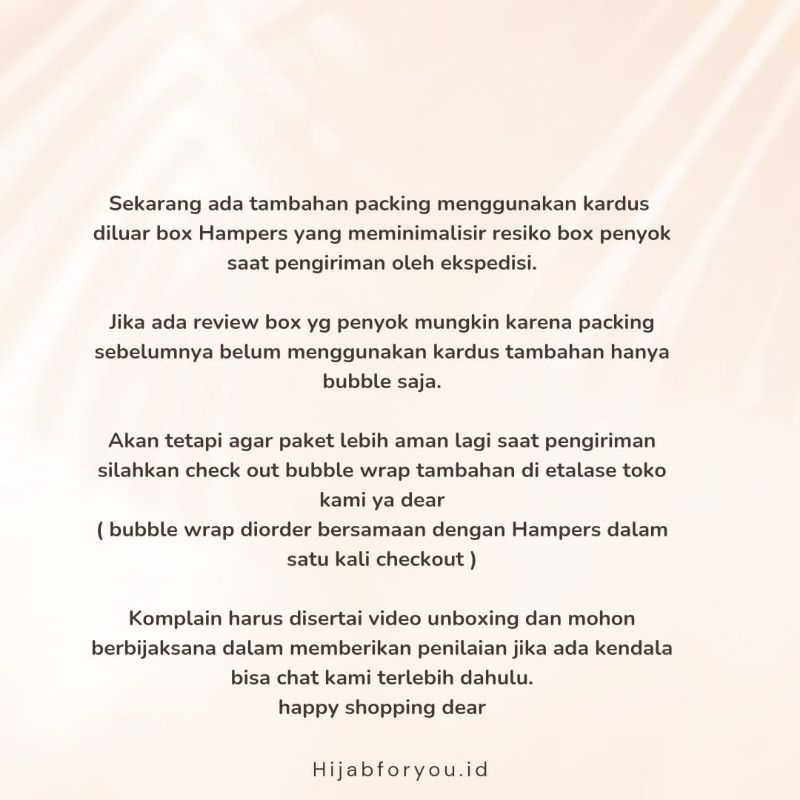PENTING❗ Free packing Kardus/box dari kami (Jika paket penyok atau rusak bukan tanggungjawab kami).