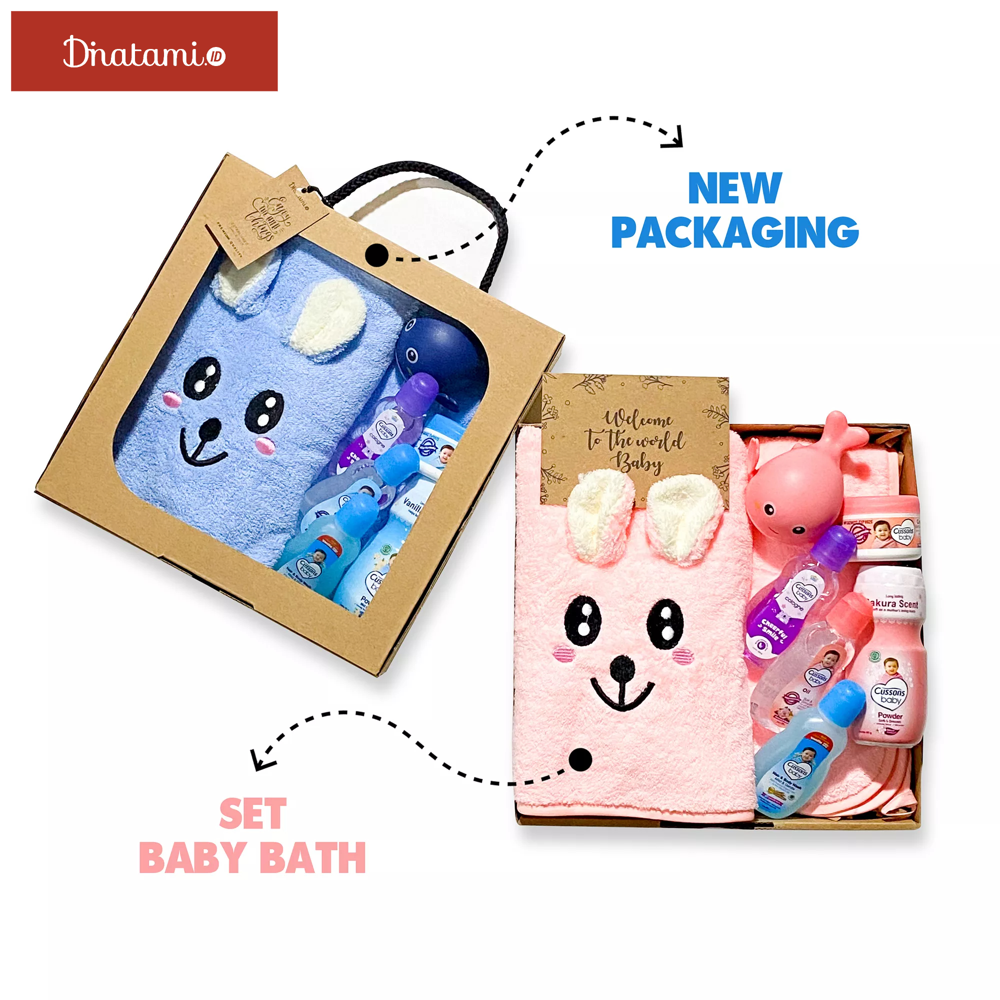 Hampers terdiri dari: - 1pc Handuk Motif Microfiber (ukuran 100x50) - 1pc Mainan Mandi - 1Set Alat Mandi Cussons Baby 1x Cussons Baby Oil 50 ml 1x Cussons Baby Powder 50 gr 1x Cussons Baby Hair & Body Wash 50 ml 1x Cussons Baby Cologne 50ml 1x Cussons Baby Cream 50g