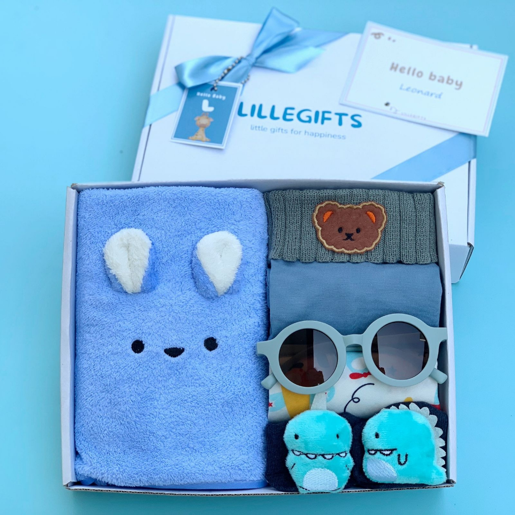 Ibu & Bayi > Set & Paket Hadiah > Hampers Kado Bayi Hamper Baby Girl Boy Kado Hadiah Lahiran Perempuan Laki Laki Gift Set Newborn Babygift Perempuan Laki-Laki Parcel Box Kotak Premium Eksklusif Kertas Bungkus Kado Lillegifts Baju Jumper Topi Sepatu Kaos Kaki Bandana Slabber Bib