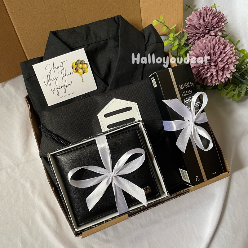 ▪️Kemeja polos warna hitam ▪️Kemeja lengan pendek dan panjang (bisa dipilih) ▪️Kemeja bahan katun ▪️Dompet bahan sintesis ▪️Parfum 35ML ▪️Model tas waistbag