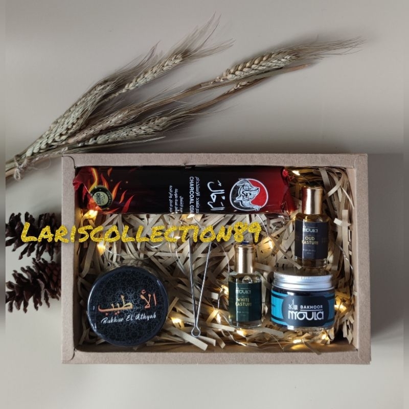 1pcs arang magic 1pcs dupa atyab 1pcs dupa moula 1pcs minyak kasturi premium by moula 12ml 1pcs minyak kasturi putih premium by moula 12ml 1pcs capit dupa free packaging dos hampers free pita+kartu lebaran