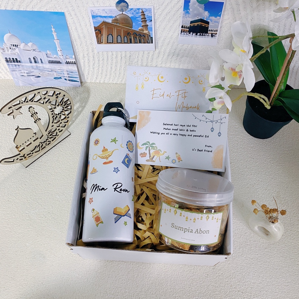- Box Ukuran 20 cm x 20cm x 10cm - 1 Personalized Tumbler - Sumpia Abon Jar (500 ml) - Kartu Ucapan Ukuran 14 cm x 9 cm (include di dalamnya pesan ucapan dari kamu)