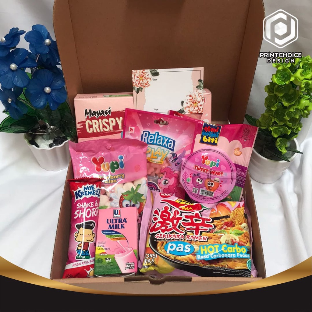 Detail HAMPERS SNACK BOX / GIFT BOX / SNACK BOX / KADO ULANG TAHUN / KADO WISUDA - PAKET PINK