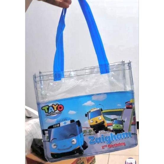 1. bunda cukup kirimi: foto + nama + ultah keberapa + tema kartun + warna tas di chat shopee