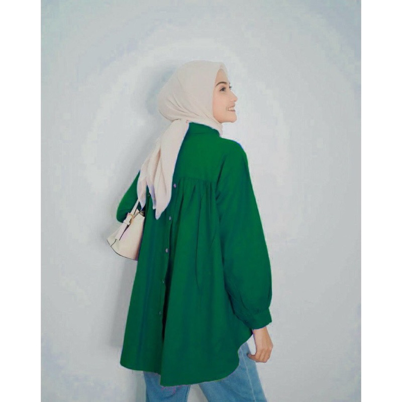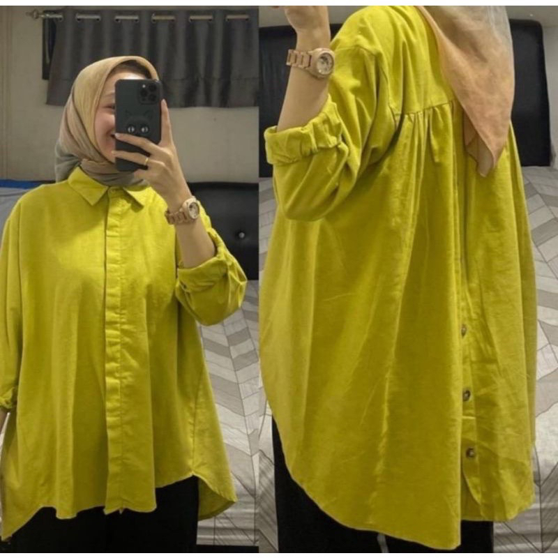NEW HANA SHIRT Kemeja linen wanita dg kncing depan yg tertutup dan kncing belakang variasi model