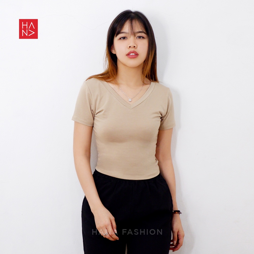 Detail HanaFashion JKT - Keisha T-Shirt Crop Tee Polos Wanita Murah - CT134