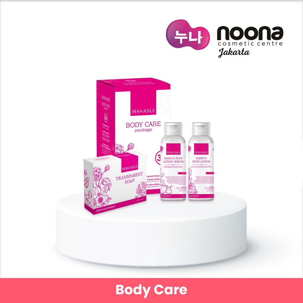 MANFAAT PAKET BODY HANASUI : - SABUN : Menjaga kebersihan dan kelembaban kulit tubuh, Menghilangkan bau badan, Memutihkan dan Mengikis sel-sel kulit mati. - DAY LOTION : Dilengkapi sunscreen SPF 20 utk memberikan perlindungan ganda terhadap kulit dari pengaruh buruk sinar matahari. Melembabkan kulit sepanjang hari. - NIGHT LOTION : Dengan ekstrak Bengkoang menutrisi kulit dari dalam. Mengandung vitamin E untuk Meremajakan kulit, Menggantikan sel kulit mati sehingga dengan cepat mejadikan kulit tampak lebih putih bersih.