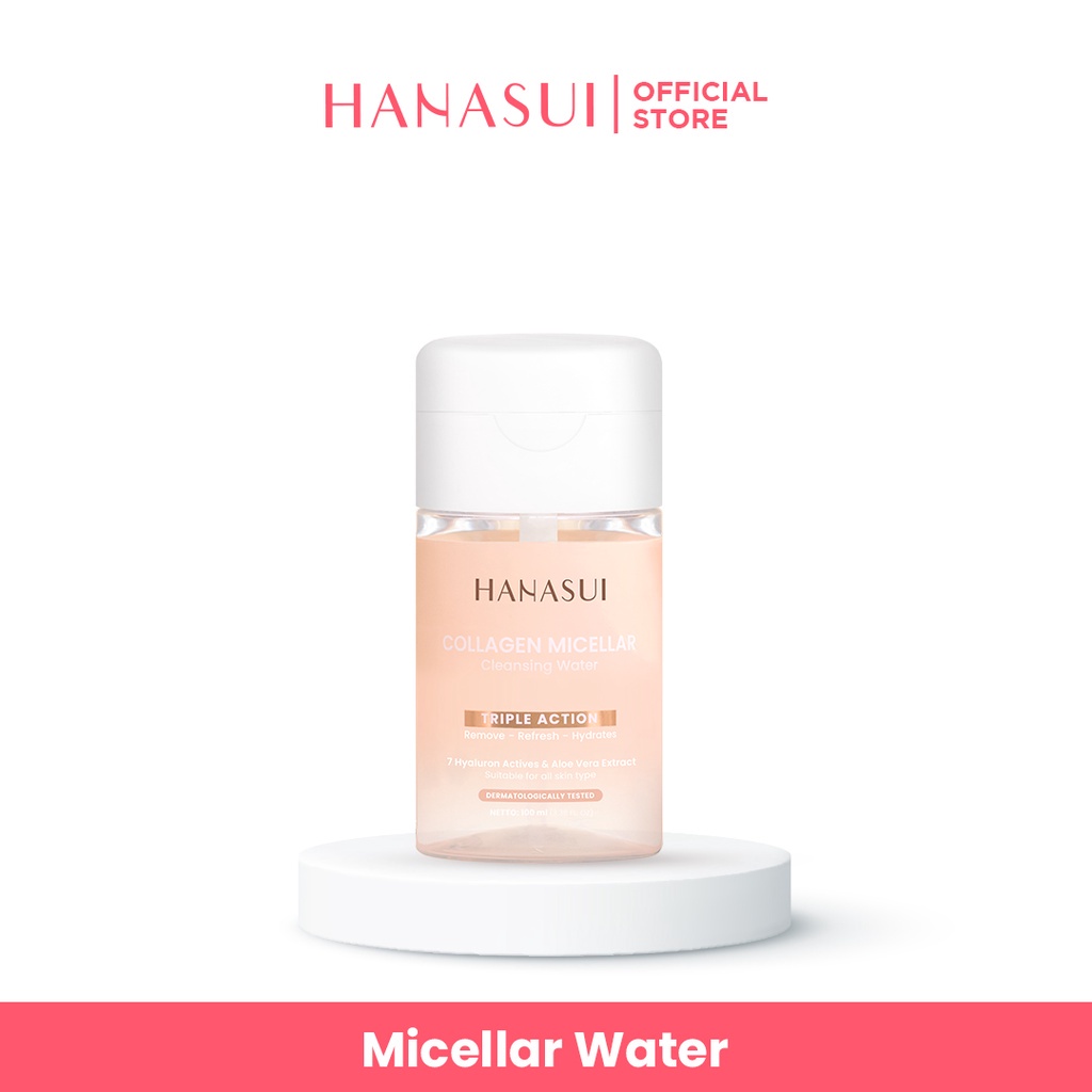 1. Hanasui Collagen Micellar Cleansing Water adalah pembersih wajah yang lembut dan tidak perlu dibilas. Mengandung Collagen Water (Collagen Ferment Filtrate), Hyamatrix 7+ dengan kombinasi 7 Hyaluron active di dalamnya dan ekstrak lidah buaya untuk menghapus riasan, minyak berlebih, serta kotoran tanpa menghilangkan kelembapan alami kulit.