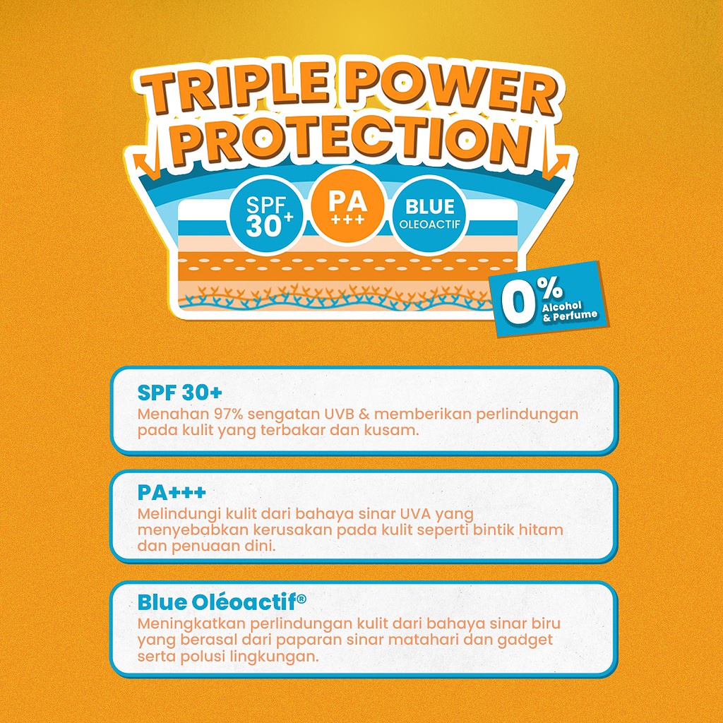 Memiliki strong Ingredients, yaitu : SPF 30⁺, PA+++ Melindungi kulit sampai 97% terhadap sinar UVB Memberikan perlindungan tinggi terhadap kulit dari sinar UVA yang menyebabkan penuaan dini (photoaging) Mencegah kulit kusam dan terbakar Blue Oléoactif® Efektif mendorong perbaikan sel kulit sekaligus melindungi kulit dari bahaya sinar biru dan polusi Mengurangi hiperpigmentasi yang disebabkan oleh sinar biru dari cahaya layar gadget Berbahan dasar dari tumbuhan (vegan dan 100% natural) Fermentation Collagen Water (Collagen Ferment Filtrate) Fermentasi Collagen Water memberikan kelembaban kulit yang lebih optimal Memberikan kelembapan 3x lebih baik dari glycerine (efek moisturizing)