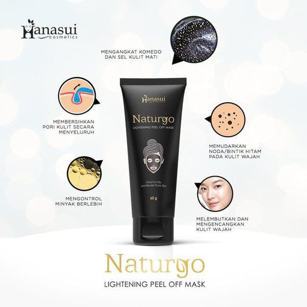 Wajah Kusam dan Komedo Numpuk?? Tenang.. Hanasui Naturgo LIGHTENING PEEL OFF MASK juara nya. Naturgo Lightening Peel Off Mask ini best seller banget lho karna emang ampuh banget angkat sel kulit mati dan komedo yang membandel di wajah dan kandungan Vitamin B3 yang berfungsi untuk mencerahkan kulit sekaligus membuat kulit senantiasa lebih halus, lembut dan lembab. Sekarang ada kemasan baru, yang lebih praktis dalam kemasan TUBE, isi lebih banyak dan lebih hemat.