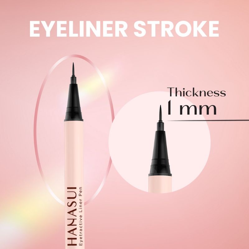 Hanasui Eyetractive Liner Pen dengan pigmen yang intens dilengkapi ujung kuas yang sangat presisi sehingga mudah diaplikasikan dan dapat bertahan sepanjang hari. Sempurna untuk menciptakan tampilan apapun dari garis tipis hingga gaya cat eye yang dramatis.