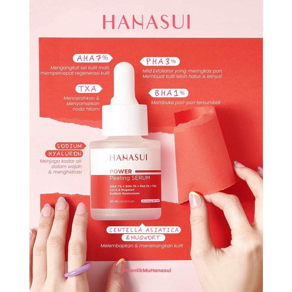 HANASUI Power Peeling Serum 20 ml NA18220104003 Dengan Powerful Multi Advance Exfoliators dari AHA+BHA+PHA yg mampu mengangkat sel kulit mati dalam 10 menit serta membantu mencerahkan dan menghaluskan kulit wajah tanpa membuat kulit kering.