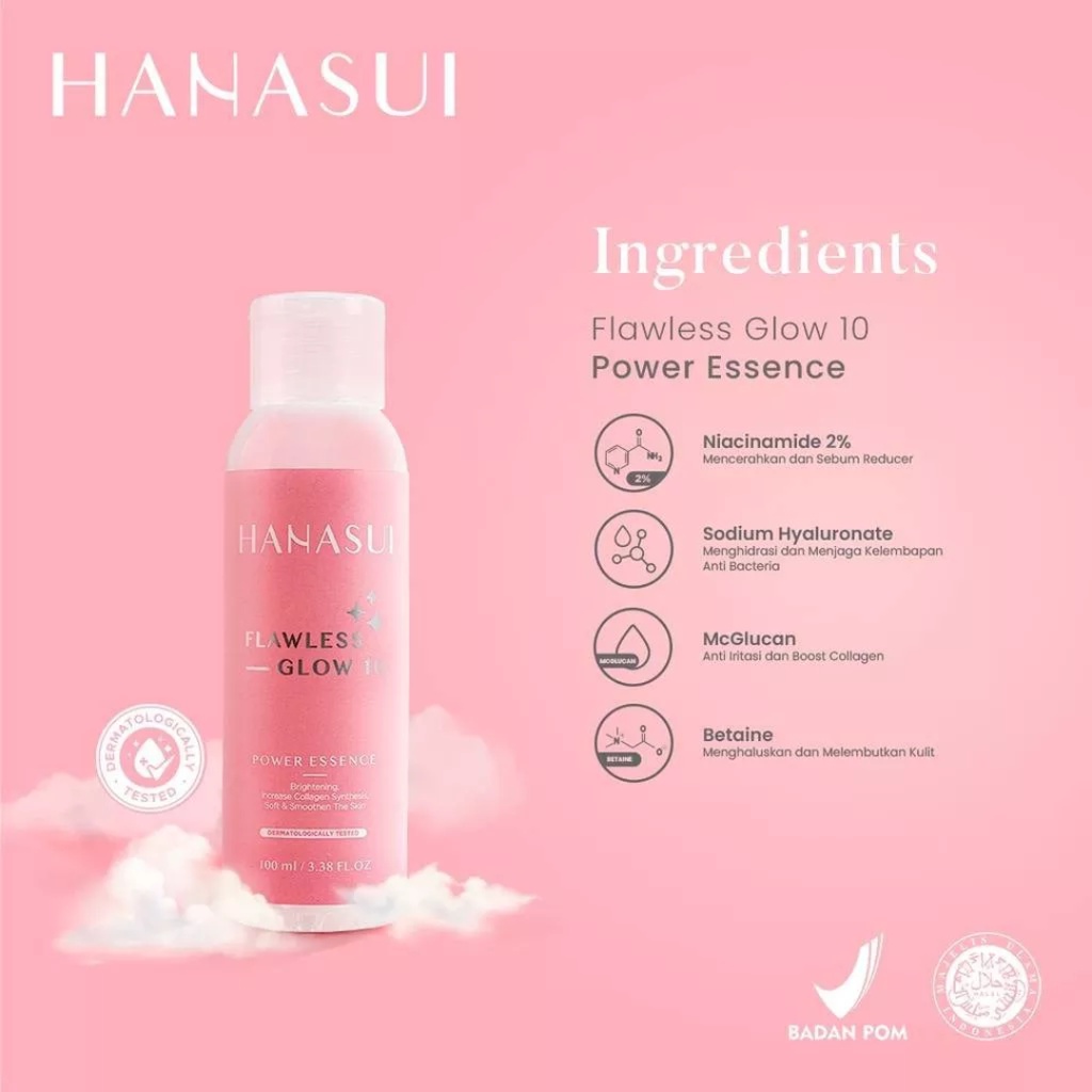 Detail HANASUI Rangkaian Flawless Glow 10 (Gentle Cleanser, Power Essence, Day Cream, Night Cream)