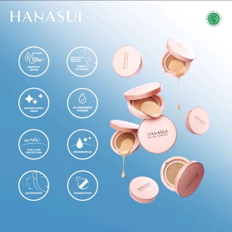 Hanasui Serum Cushion adalah cushion yang mengandung kombinasi Niacinamide, Sodium Hyaluronate, Vitamin E , dan Ekstrak Aloe Vera yang memberikan manfaat perawatan kulitdan coverage wajah.