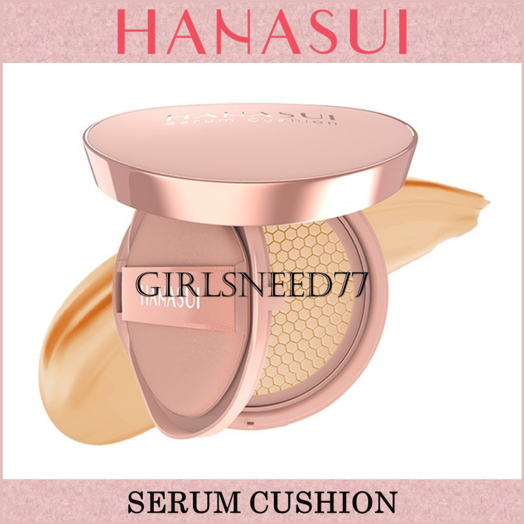 Hanasui Serum Cushion adalah cushion yang mengandung kombinasi Niacinamide, Sodium Hyaluronate, Vitamin E , dan Ekstrak Aloe Vera yang memberikan manfaat perawatan kulitdan coverage wajah. Dengan tekstur ringan dan menutupsempurna, namun tetap melembabkan menjadikan hasil makeup lebih flawless dengan hasil akhir Dewy yang natural.