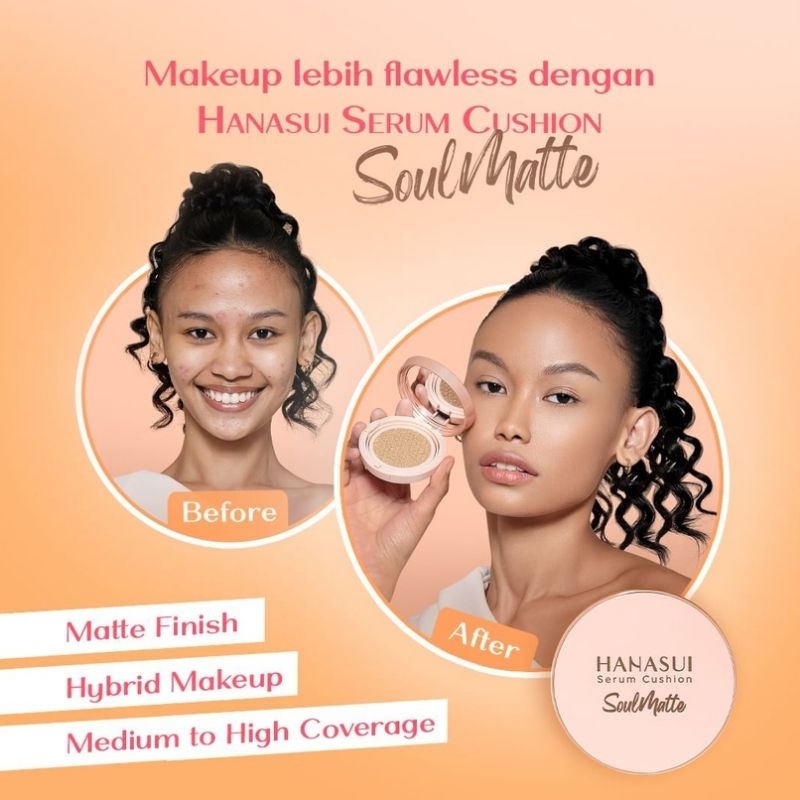 Cushion dari hanasui yg mengandung kombinasi Niacinamide,sodium hyaluronate,vitamin E dan ekstraks aloevera yg memberikn manfaat perawatan kulit dan coverage wajah.Dengan tekstur ringan dan menutup sempurna namun tetap melembabkn mnjadikn hasil makeup lbh flawless dg hasil akhir dewy yg natural. Keunggulan: Cushion dg manfaat serum,protect coverage namun ttp melembabkn,flawless dan natural dewy finish,menyamarkan tampilan pori2 garis halus dan noda di wajah dan memiliki puff dg ujung segitiga yg mempermudah pengaplikasian sudut wajah.