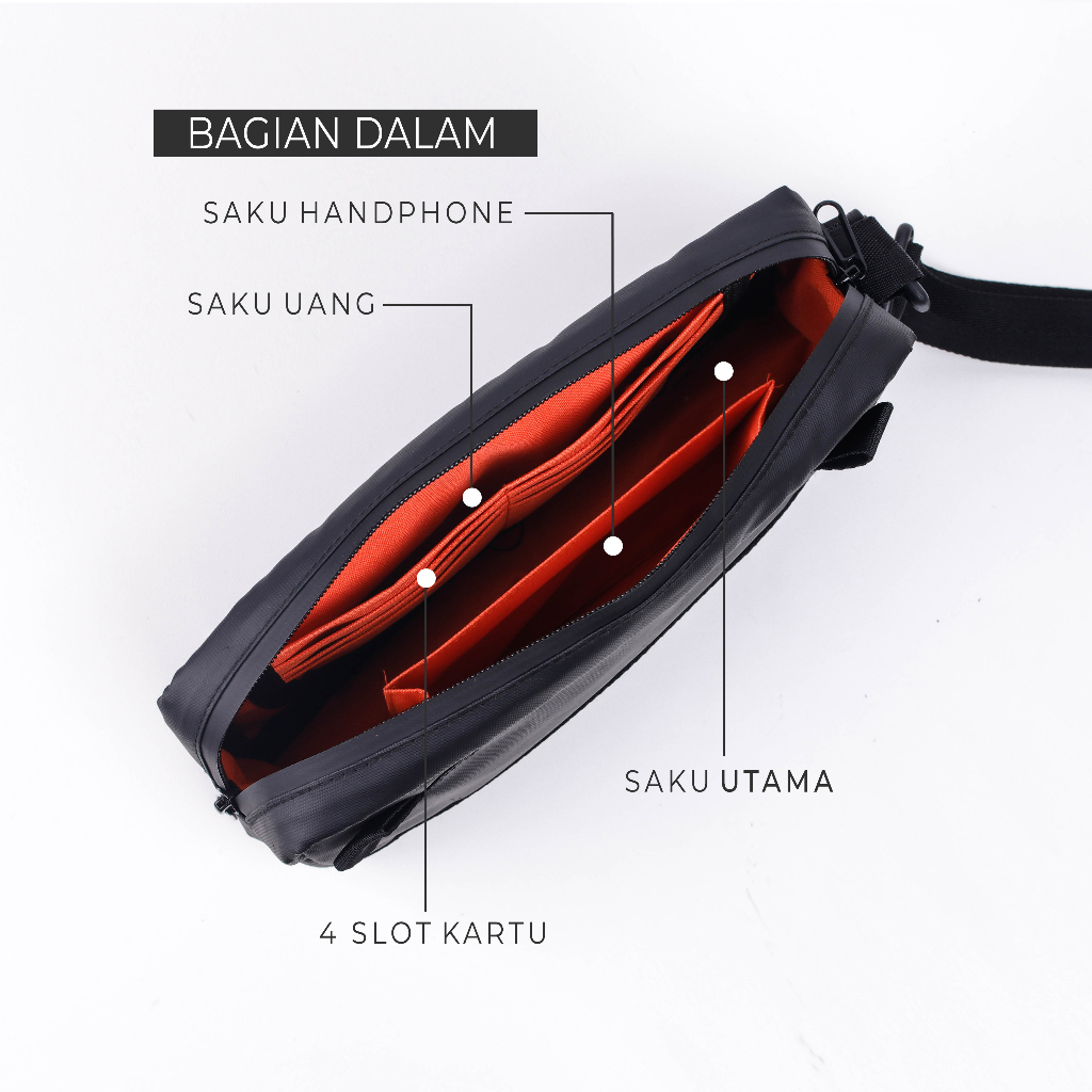 SPESIFIKASI HANDBAG HELIX MOKAMULA : - Bahan Utama : Premium Polyester Bimo Waterproff - Bahan Dalam : D300 - Resleting : Waterproof - Puller Slider : YKK Size 5 - Tali : Webbing Seatbelt 4 cm Panjang 1,5 m