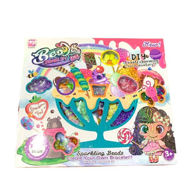 BEADS JEWELRY ADALAH PERLENGKAPAN UNTUK ANAK AGAR BISA MEMBUAT GELANG ATAU KALUNG BERDASARKAN IMAJINASI DAN BENTUK SESUAI YANG DIINGINKAN DENGAN MUTE BERWARNA WARNI YANG LUCU. DILENGKAPI DENGAN MUTE 13 BENTUK YANG BERBEDA