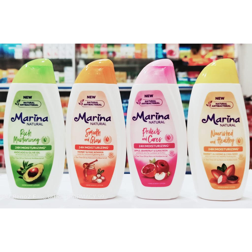 Marina Smooth & Glow Hand & Body Lotion dengan kandungan wonderfood dari Macadamia & Pure Honey sebagai superfood ingredients yang merawat kulit tetap halus dan menjaga kelembapan alami kulit hingga lapisan terdalam selama 24 jam.