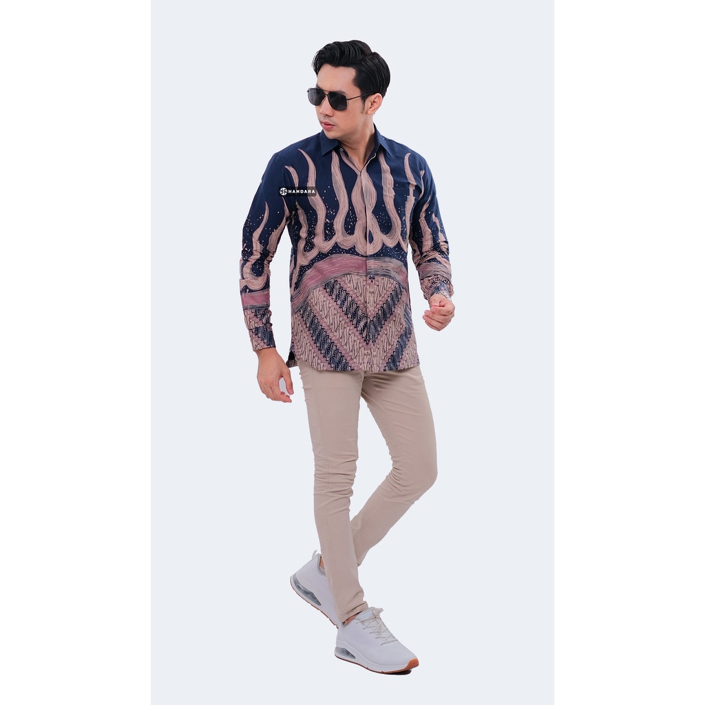 Detail Handara Batik Pria Casual Lengan Panjang Slim Fit Premium Legowo Navy Pink HB-330