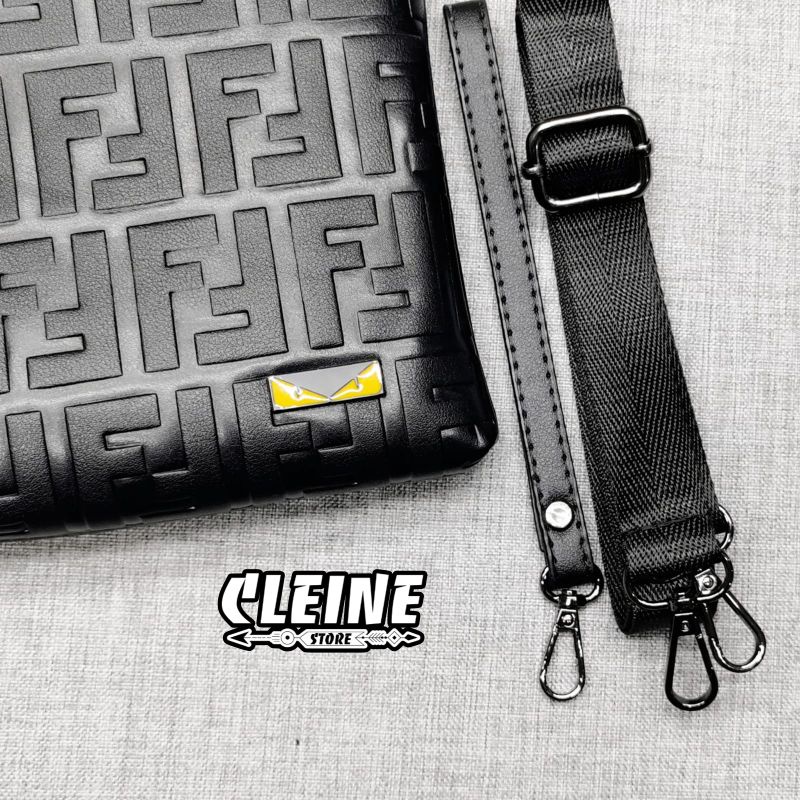 Detail Handbag Clutch Pria Fendoy Leather Black