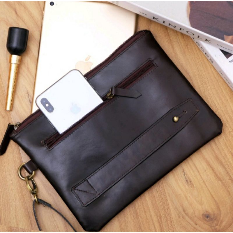 Material: Tas Tangan / Handbag / Pouch / Clutch Kulit Sapi Asli Premium Jenis Pull up