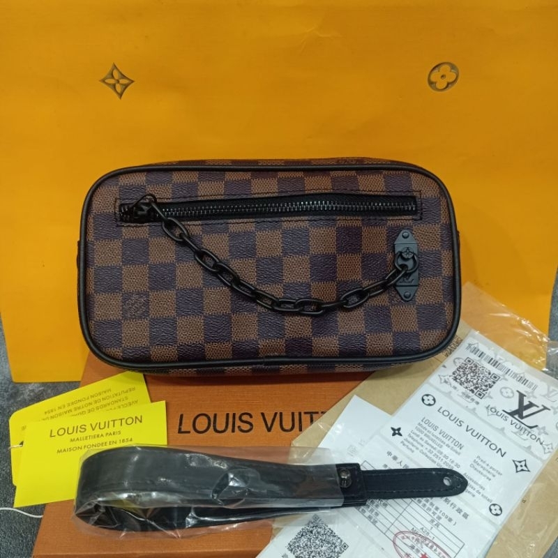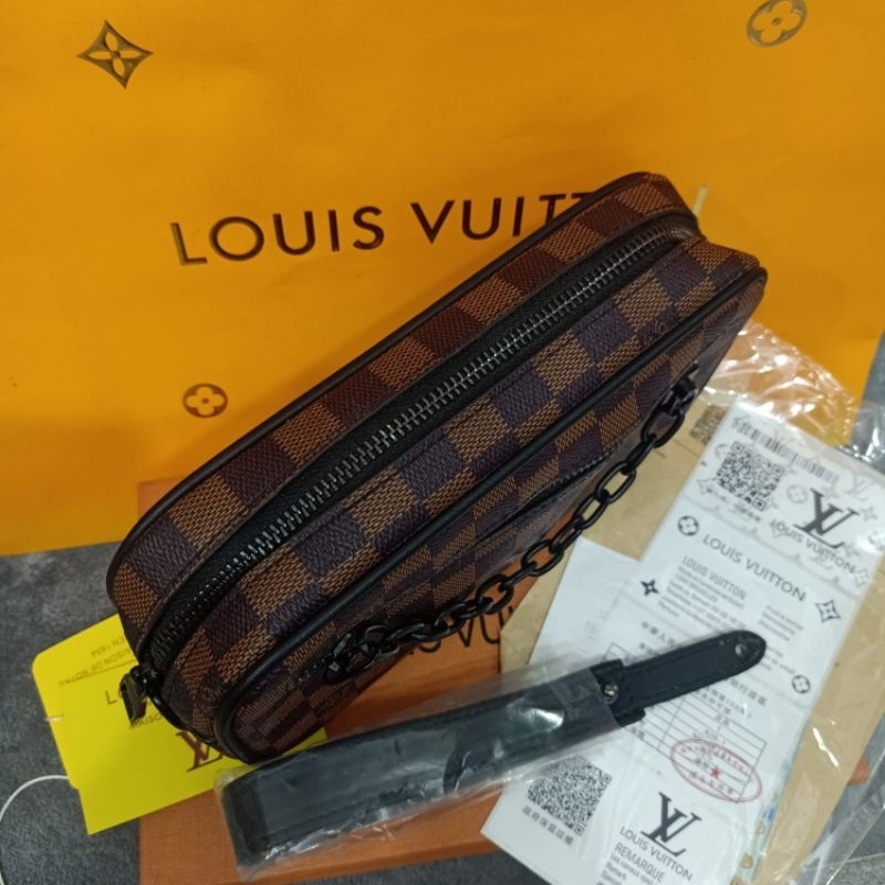 Detail Handbag LV Pochette volga Damier Brown Clutch Tas Tangan Import