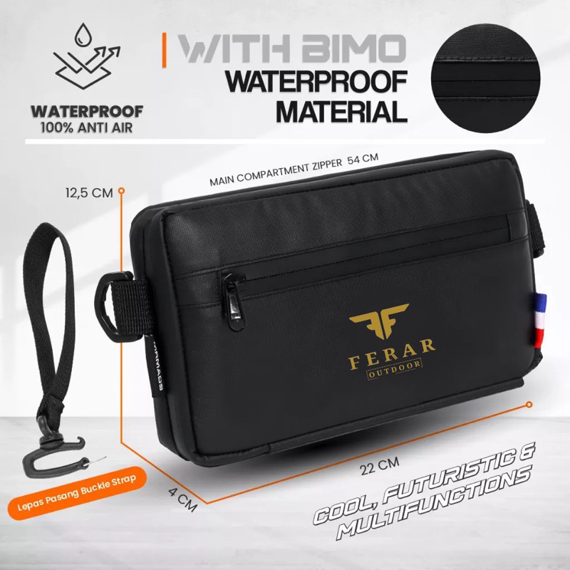 Clutch Bag Ferar Furious merupakan tas kecil hasil inovasi perpaduan antara Sling Bag, Pouch Bag dan Hanging Bag. Didesign dengan multi kompartemen, menjadikan Mileva Clutch Bag ini mampu menyimpan barang bawaanmu agar lebih terorganisir. Kompartemen belakang yang transparan berfungsi untuk mengakses HP (Handphone) tanpa perlu dikeluarkan. Bahan utama tas ini anti air termasuk resleting. Dilengkapi dengan fitur 2 tali yaitu Pouch Strap dan Tali Selempang yang bisa dilepas pasang, Mileva Clutch Bag bisa digunakan dalam berbagai Gaya; Clutch Bag, Sling Bag, Pouch Bag dan Hanging Bag. Dengan designnya yang simple dan casual, Clutch Bag Furious ini cocok digunakan untuk acara formal ataupun saat nongkrong bersama teman.