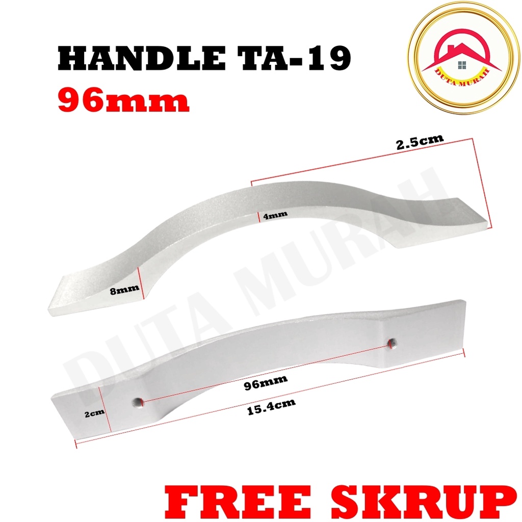* Handel TA 19 - 96 mm >>>Panjang antar sekrup: 96mm >>>panjang keseluruhan: 15.4 cm - 128 mm >>>Panjang antar sekrup: 128mm >>>panjang keseluruhan: 19.8 cm - 160 mm >>>Panjang antar sekrup: 160mm >>>panjang keseluruhan: 23 cm