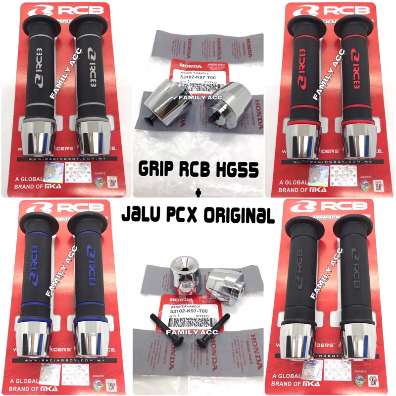 Otomotif > Aksesoris Sepeda Motor > Aksesoris Sepeda Motor Lainnya > HANDGRIP GRIP RCB RACING BOY ORIGINAL HG55 + JALU STANG PCX ORI 53102-K97-T00 MOTOR UNIVERSAL PCX ADV AEROX VARIO SCOOPY XMAX DLL
