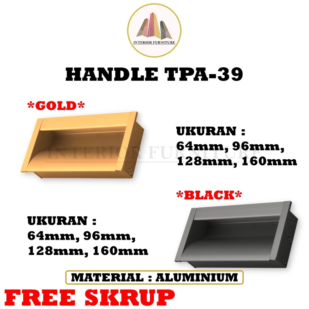 Handle Laci Tanam Black / Handel Laci Tanam Hitam/ Tarikan Laci Tanam Hitam TPA-39 Merek: HUBEN Bahan: Aluminium Warna: Hitam dan Emas Ukuran / Varian: - 64mm - 96mm - 128mm - 160mm ***** NOTE: Lihat pada varian masing-masing produk *****