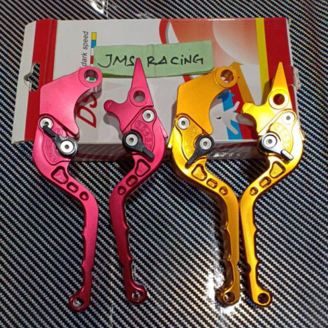 Handle cn Merek ds Warna merah dan gold Buat motor beat/vario lama,beat fi,vario 150,scooy,nmax,mio,fu,tiger,cb150/cbr 150,vixion Pnp Bahan full cnc Untuk pemesanan harap di cantumkan untuk motor apa ya bosku