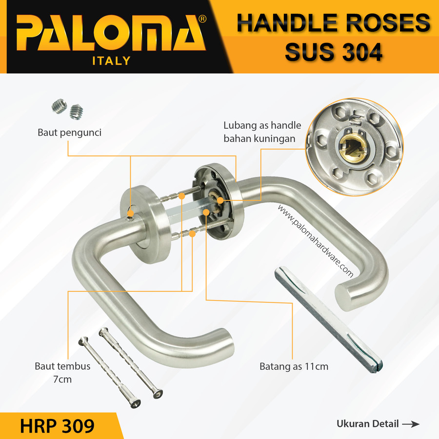 Detail Handle Roses Paloma HRP 309 Gagang pintu LHT PABLO SSS SUS 304
