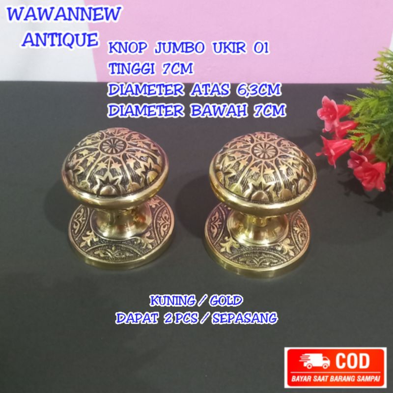 Handle / Tarikan Pintu Rumah Pagar Kuningan Antik Motif Ukir Knop Jumbo 7cmHandle / Tarikan Pintu Rumah Pagar Kuningan Antik Motif Ukir Knop Jumbo 7cmHandle / Tarikan Pintu Rumah Pagar Kuningan Antik Motif Ukir Knop Jumbo 7cm