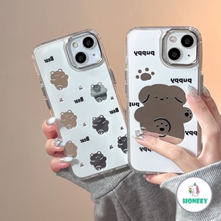 IPHONE Cermin Rias Beruang Lucu Kartun Puppy Shockproof Phone Case Untuk Iphone14 11 12 13 Pro Max Huruf Lucu Lembut Penutup Belakang
