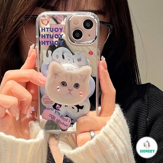 Mirror Lovely Kitty Cat Grip Holder Phone Case Untuk iPhone 14 ProMax 13 12 Pro Max11 Cases Wanita Lucu Bracket Stand Soft Cover