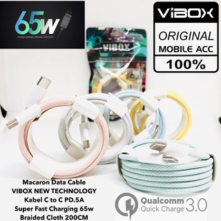 PROMO Macaron Data Cable VIBOX NEW TECHNOLOGY Kabel C to C PD.5A Super Fast Charging 65w Braided Cloth 200CM