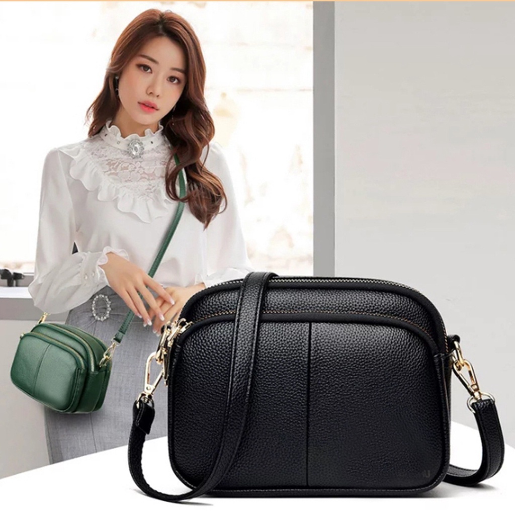 Bahan: PU Leather Ukuran: 20cm x 9cm x 14cm Variasi Warna: Hitam, Hijau, Merah, Biru Berat: 400gr Panjang Tali: 100cm Design: Fashionable Stylish Modis Cocok digunakan untuk Hangout, Kerja, Belanja, dan aktivitas casual lainnya. Kemiripan produk 80-95% Jahitan Rapih dan Berkualitas