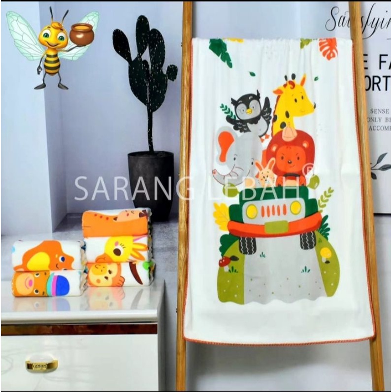 Handuk ini dibuat dengan bahan mickrofiber yang nyaman di gunakan anak anak dengan bahan yang halus dan lembut dengan daya serap yang tinggi. Dengan berbagai macam warna dan motif yang lucu dan menarik. Handuk baby sarang lebah hadir dengan ukuran jumbo. Handuk baby ini juga cocok sebagai kado, souvenir, dan lain lainnya