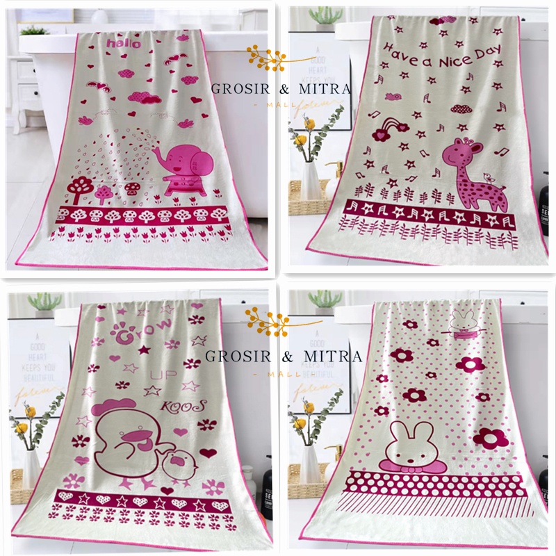 Perlengkapan Rumah > Kamar Mandi > Handuk Mandi & Kimono > Handuk Bayi Microfiber 50X100cm / 60x120cm Handuk Mandi Anak Baby Lembut Handuk Murah Washlap Bayi motif baby putih