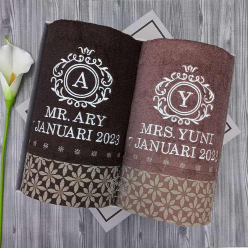 --- Ketentuan --- 1.Format pemesanan bisa kamu cantumkan di kolom keterangan, atau bisa chat langsung admin kami Motif handuk dan desain bordir sesuai gambar di iklan 2.Warna benang bordir ditentukan oleh tim bordir kami, sudah disesuikan dengan warna handuk nya 3. Pemesanan handuk polos tanpa bordir bisa kami kirim di hari yang sama sebelum pemesanan pukul 15:00 4. Pengiriman dilakukan setiap hari