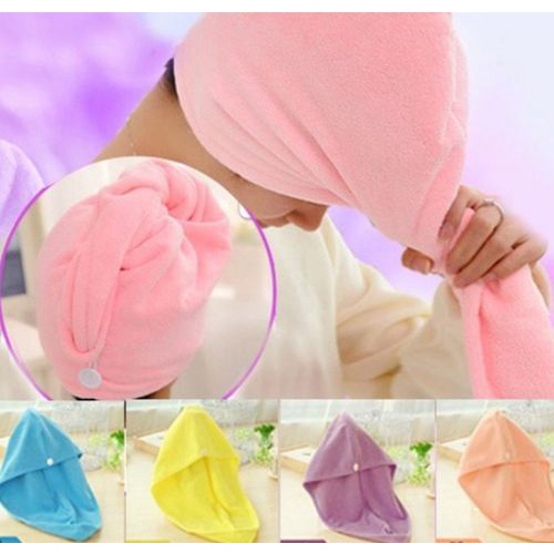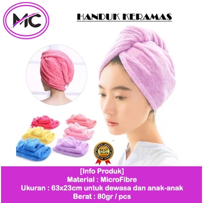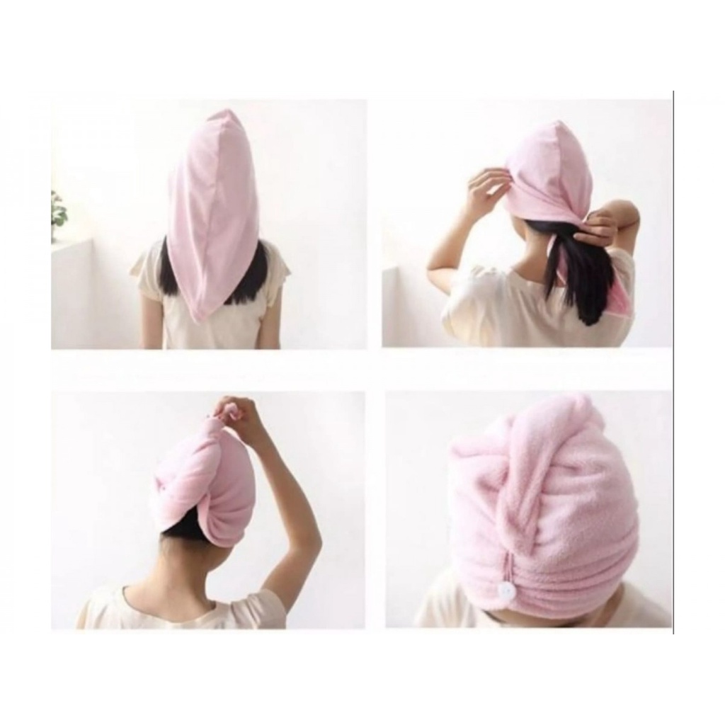 Detail Handuk Keramas Microfiber Pengering Rambut Lap Rambut Cepat Kering Dewasa Model Kancing Magic Towel Turban