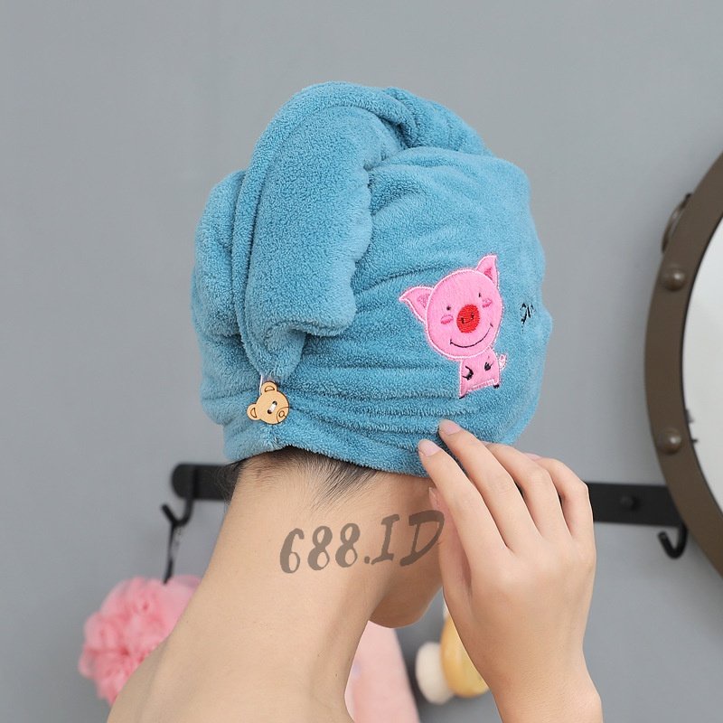 Detail Handuk Keramas Model Kancing Microfiber Handuk Pengering Rambut Tebal Handuk Kepala Nyerap Air Ukuran 25x65 Impor Murah HDK 01