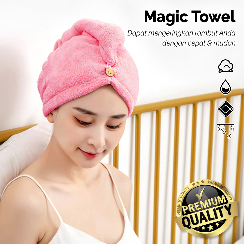 Magic towel praktis motif yang cantik dapat mengeringkan rambut Anda dengan cepat dan mudah. Memiliki daya serap tinggi, sehingga Anda tidak perlu takut untuk mengeringkan rambut tanpa harus meneteskan air. Handuk ini juga dapat mengurangi kerusakan pada rambut Anda.