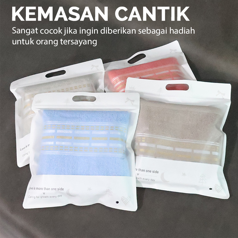 ✅FITUR : ▪️ Berdaya serap tinggi bahan halus & lembut dikulit ▪️ Dilengkapi teknologi pile towel anti microbial protection (anti bau) ▪️ Kemasan cantik yang elegan membuatnya lebih mewah ▪️ Kualitas tinggi dibuat dengan teknik tenun modern, menghasilkan permukaan yang lembut & daya serap 100x lebih baik dari katun biasa