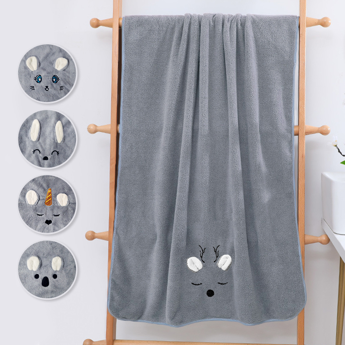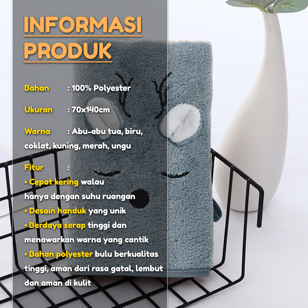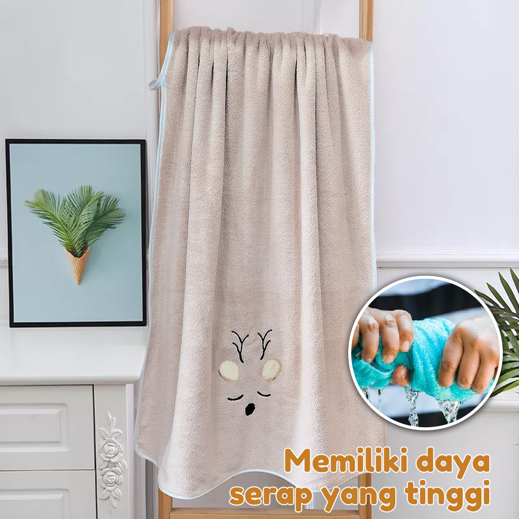 Detail Handuk Mandi Anak Bayi Motif Rusa Panda Kelinci Jumbo Size 70x140cm Polyester Premium Tebal Lembut Perlengkapan Rumah Tangga Import - H7-A - 88Blanketstore