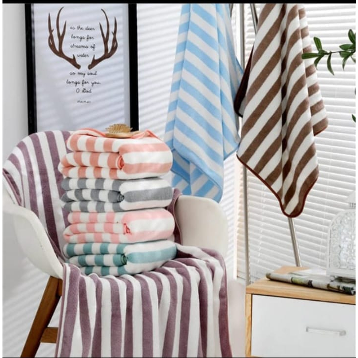 Detail Handuk Mandi Dewasa Microfiber bulu 70x140 Motif Salur Garis Handuk Mandi Anak Bayi Lembut Super Serap Air Import