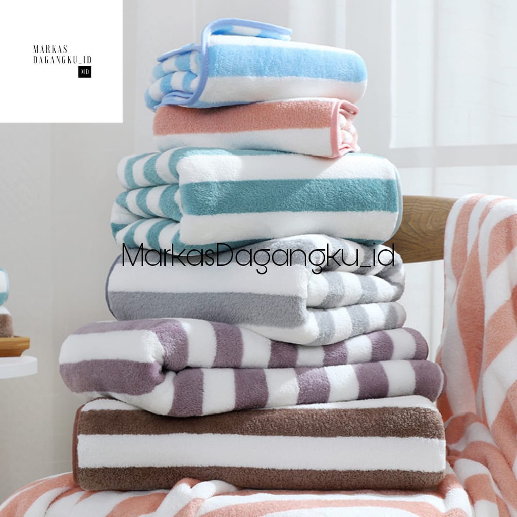 Detail Handuk Mandi Dewasa Quick Dry Microfiber Bulu Garis Lembut 70x140 Super Serap Air Premium